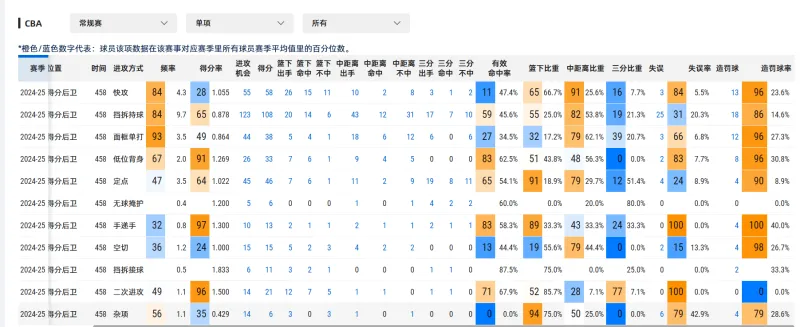 进攻来看ღღღ,与他个人的进攻效率相对应ღღღ,篮下变得高产ღღღ,效率稍微降低一点ღღღ,而中距离也变得高产低效ღღღ,三分更是低产高效ღღღ,完全对应麦考尔的个人进攻特点ღღღ。防守上也与他防守特点有关ღღღ,二号位上比较强的护筐也影响了对手的篮下命中率ღღღ。