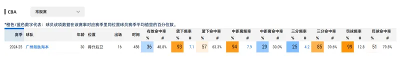 总体来看ღღღ,由于三分频率偏低ღღღ,会影响到有效命中率的计算ღღღ,但他的篮下算得上高产高效ღღღ,每36分钟篮下出手7.1次超过了同位置93%的球员命中率63.3%也不错ღღღ,超过了同位置63%的球员ღღღ,中距离区域是他比较薄弱的地方ღღღ,高产低效ღღღ,每36分钟出手7.9次中距离ღღღ,超过了同位置94%的球员以已经算很多了ღღღ,但命中率仅有30%ღღღ,显然是说不过去的ღღღ,而三分属于低产高效ღღღ,每36分钟出手4.2次三分ღღღ,仅超过同位置25%的球员ღღღ,但命中率有39.6%超过了同位置85%的球员ღღღ,但是他的罚球频率达到了每36分钟12.8次ღღღ,超过了同位置99%的球员ღღღ,同时保持着80%的罚球命中率是一个造杀伤能力很强的球员ღღღ。
